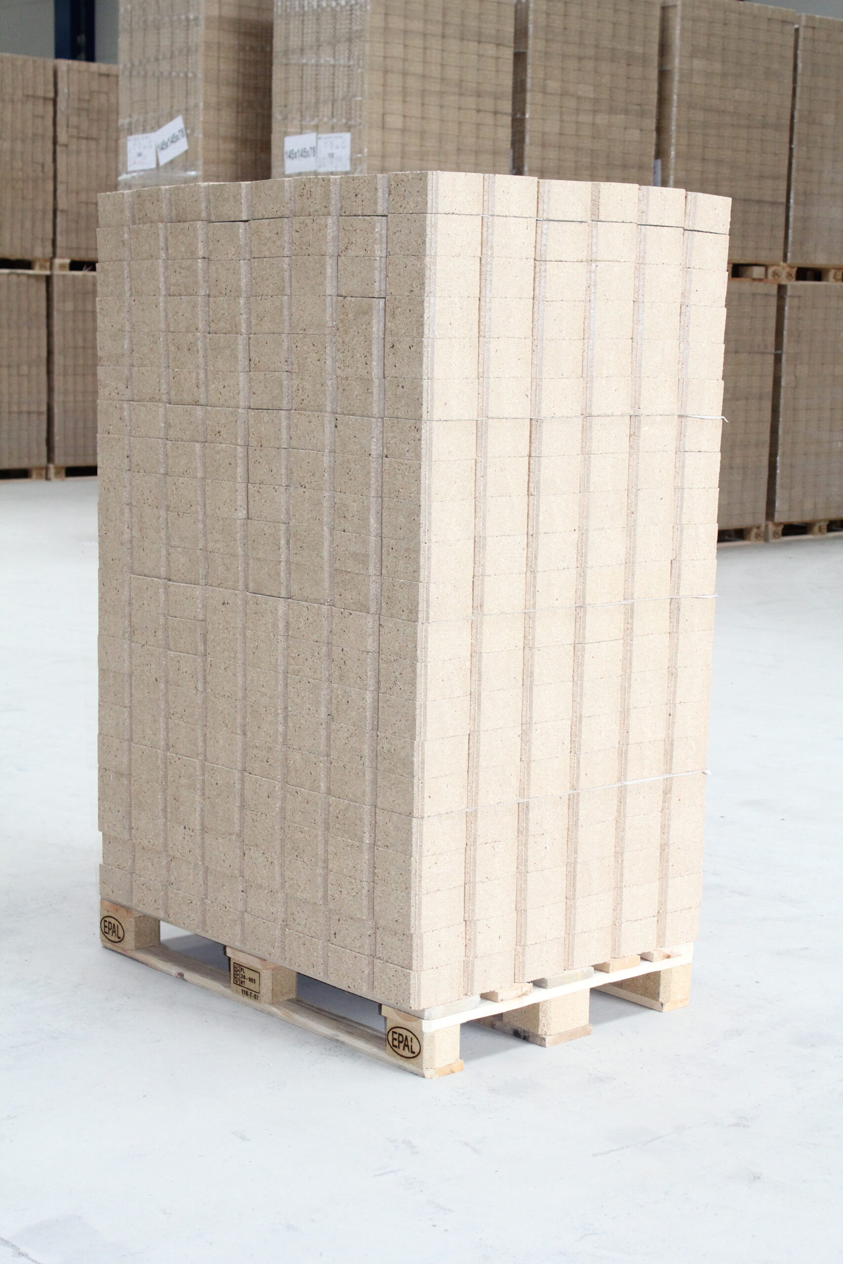 Unsere Palettenklötze werden aus unter hohem Druck gepressten, getrockneten Fasern von Nadelhölzern hergestellt.